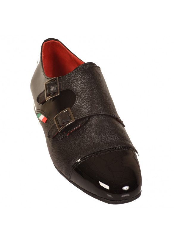 Material: black leather and black pathent leather