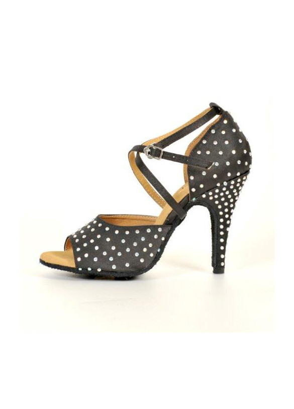 Sandalo da ballo raso nero/strass tacco 10 cm art. Stardust
